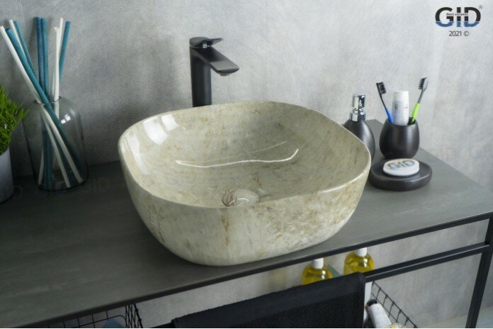 Накладная раковина мрамор 42.5x42.5х14.5 см, Gid, Mnc545