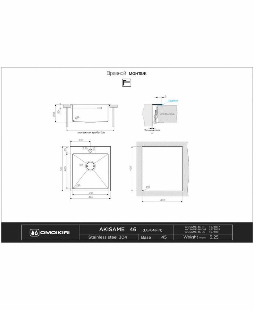 Ниже Вы можете прочитать отзывы на Кухонная мойка Omoikiri Akisame 46-GM 46х51 вороненая сталь, ознакомится с подробными характеристиками, посмотреть интересные обзоры и фотографии на Кухонная мойка Omoikiri Akisame 46-GM 46х51 вороненая сталь.