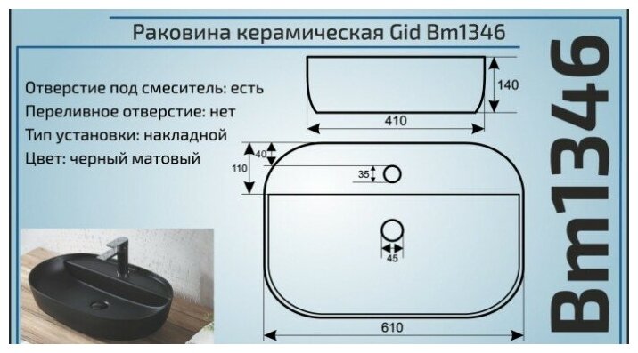 Раковина Gid Bm1346 черный