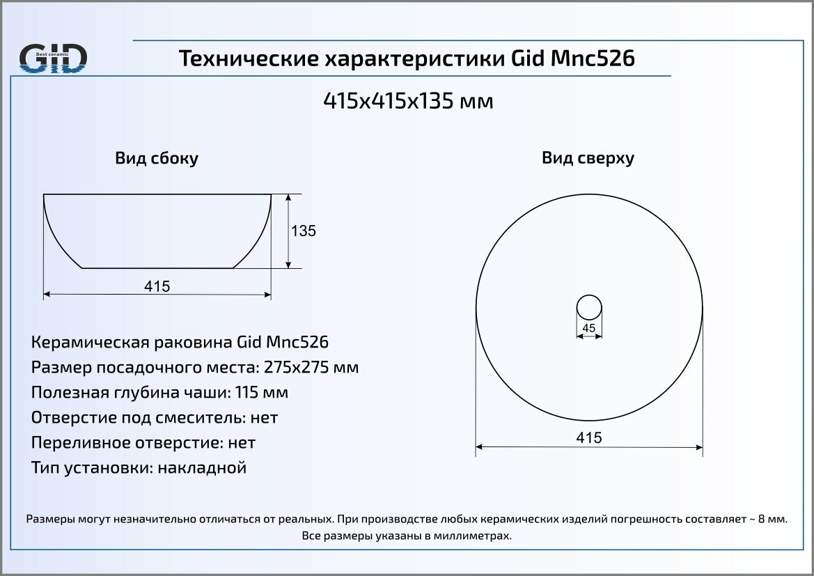 Gid Раковина Gid Mnc526 накладная, мрамор