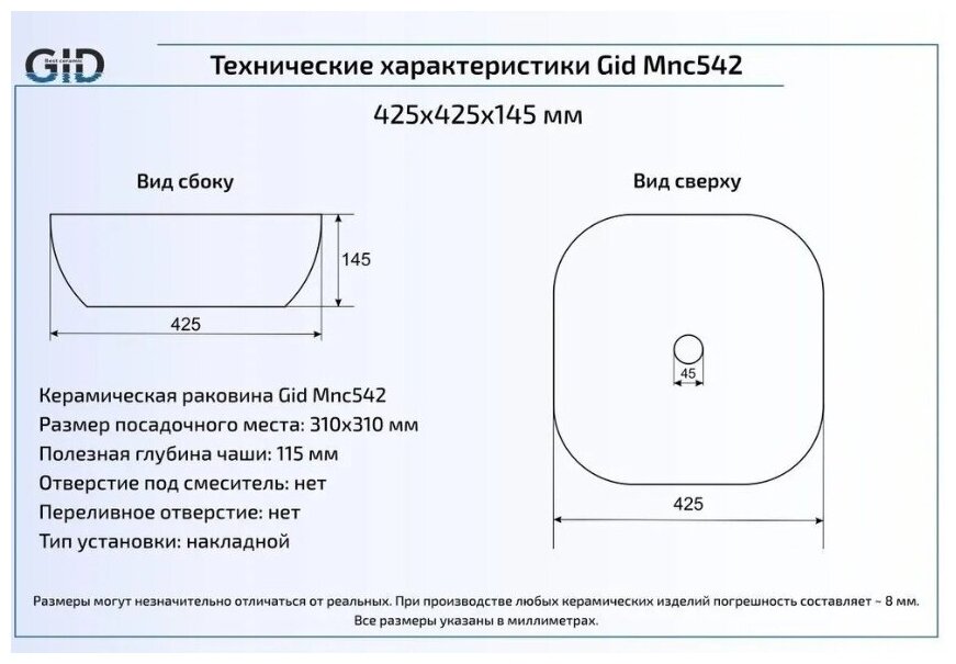 Ниже Вы можете прочитать отзывы на Накладная раковина для ванной Gid Mnc542 с донным клапаном, ознакомится с подробными характеристиками, посмотреть интересные обзоры и фотографии на Накладная раковина для ванной Gid Mnc542 с донным клапаном.
