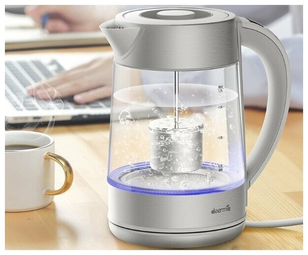 Чайник электрический DEERMA DEM-SH50W, стекло, 1.7 л, 2200 Вт, регулировка t°, серебристый