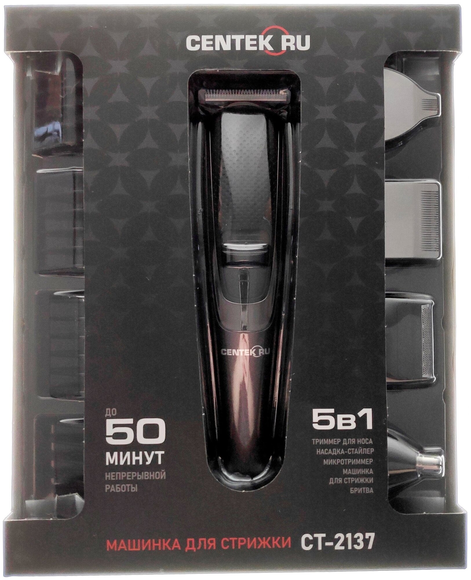 Машинка для стрижки Centek CT-2137 чёрный (набор 5в1: микротриммер, бритва,стайлер,триммер для носа)