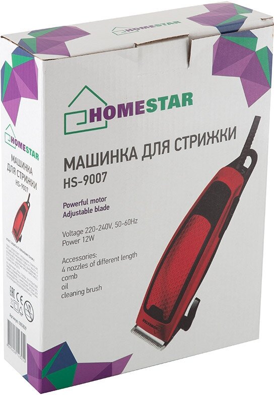 Купить Машинка для стрижки HOMESTAR HS-9007 12 Вт, 4 насадки, красный/черный