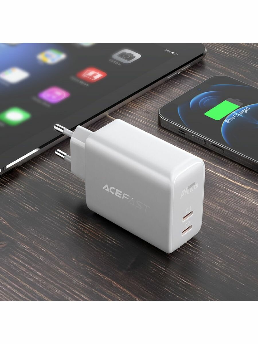 Сетевое зарядное устройство ACEFAST A9 PD40W, 2xUSB-C, белый