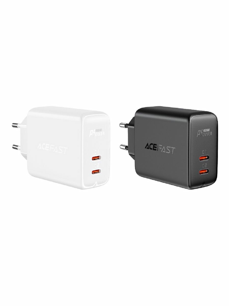 Зарядное устройство двухпортовое ACEFAST A9 PD40W USB-C+USB-C dual port charger (EU). Цвет: белый.