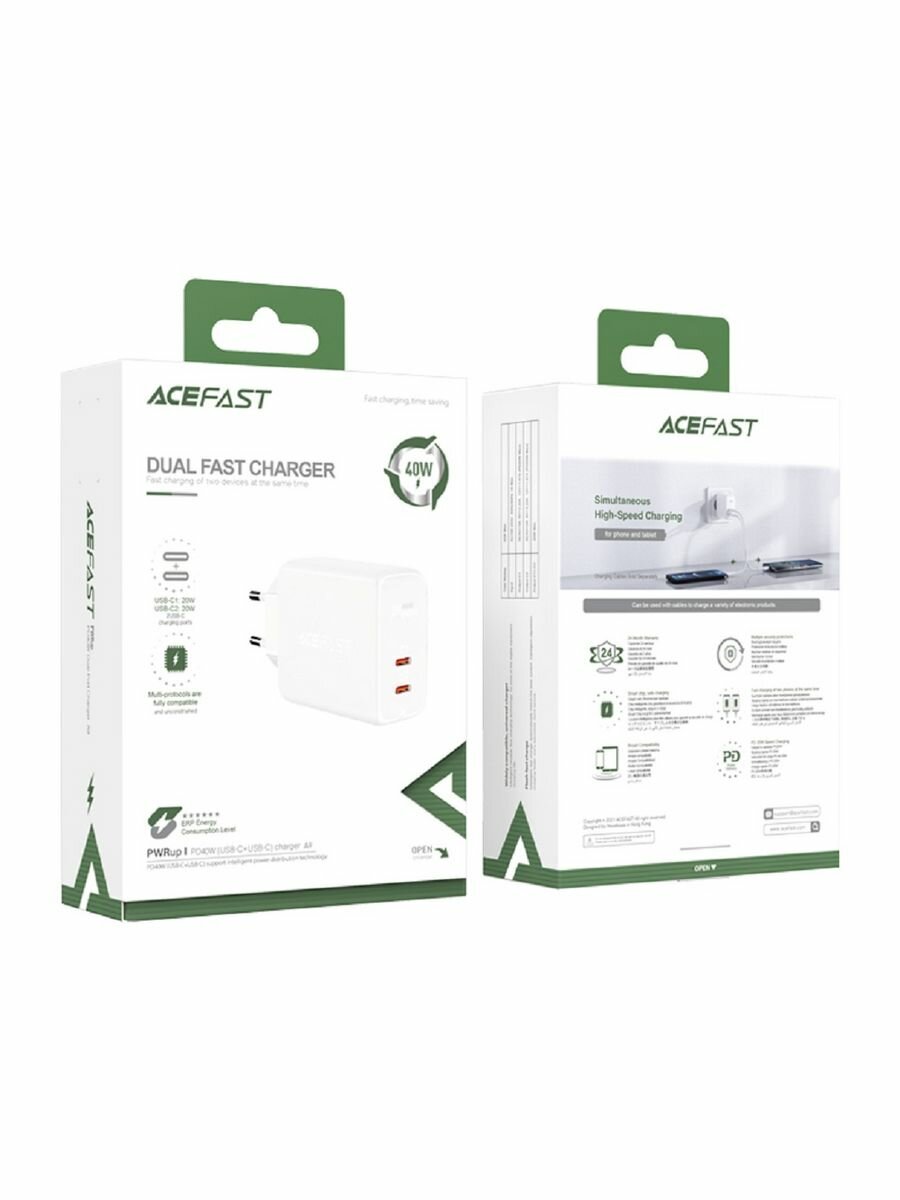 Ниже Вы можете прочитать отзывы на Сетевое зарядное устройство ACEFAST A9 Dual fast Charger, USB-C + USB-C, PD40W, Белый, ознакомится с подробными характеристиками, посмотреть интересные обзоры и фотографии на Сетевое зарядное устройство ACEFAST A9 Dual fast Charger, USB-C + USB-C, PD40W, Белый.