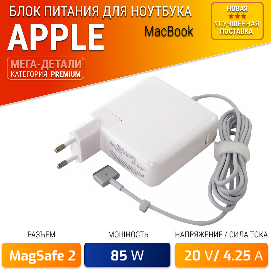 Блок питания (зарядка) 20V 4.25A 85W (Magsafe 2) для Apple MacBook A1398, A1424, Pro Retina 15 интересное: