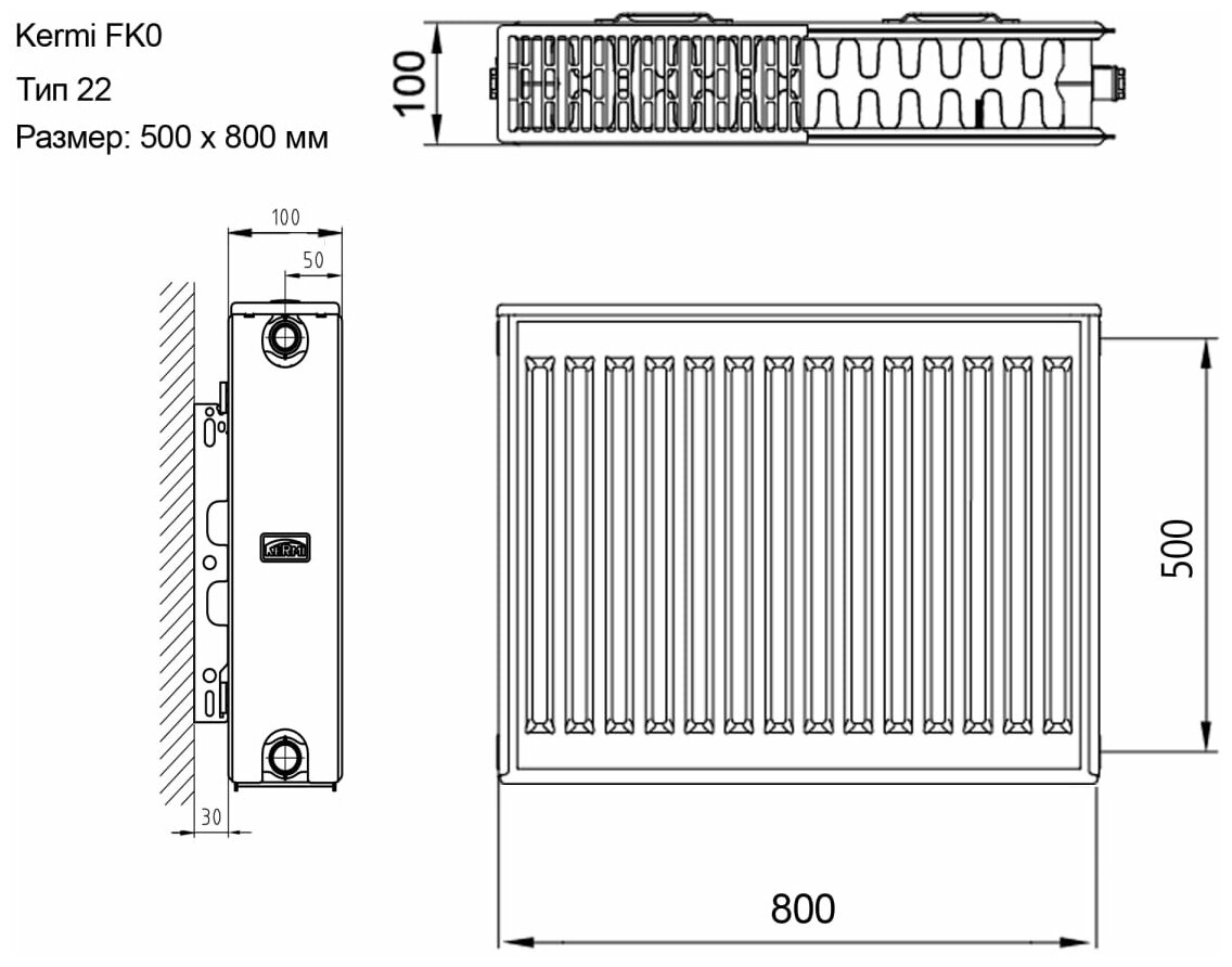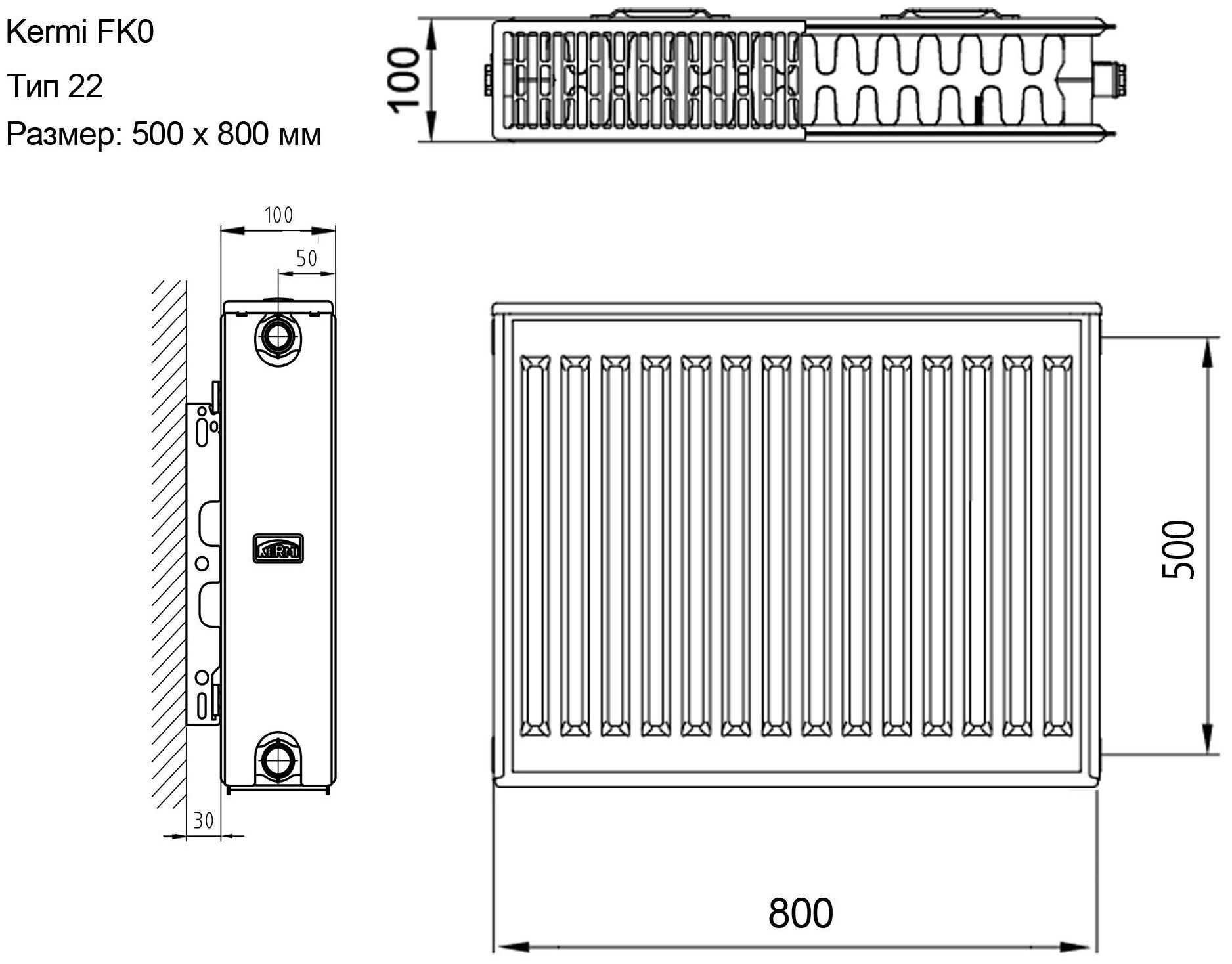 Радиатор Kermi 22 500x800 мм боковое подключение сталь интересное: