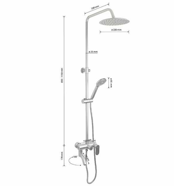 | Комплектация | верхний душ / лейка / шланг / держатель для лейки / Смеситель |