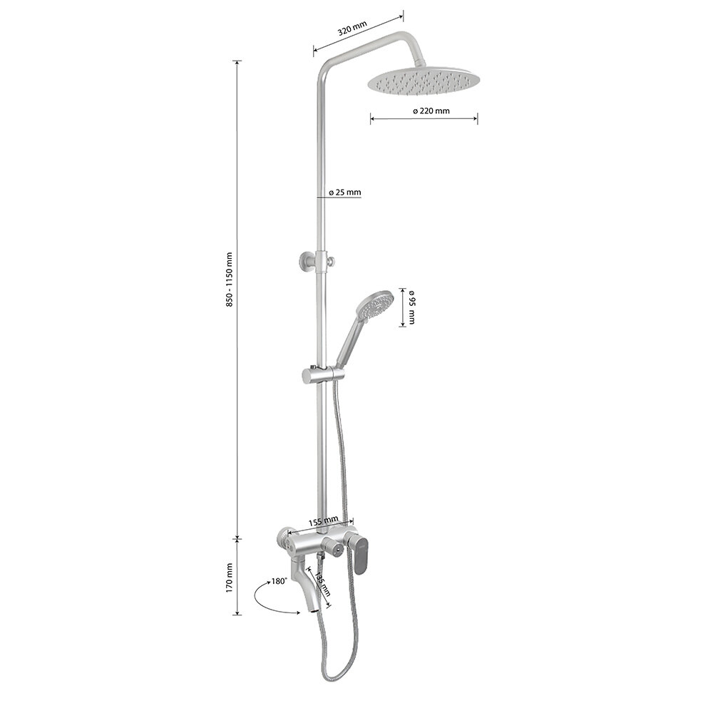 | Материал душевой стойки | алюминий |