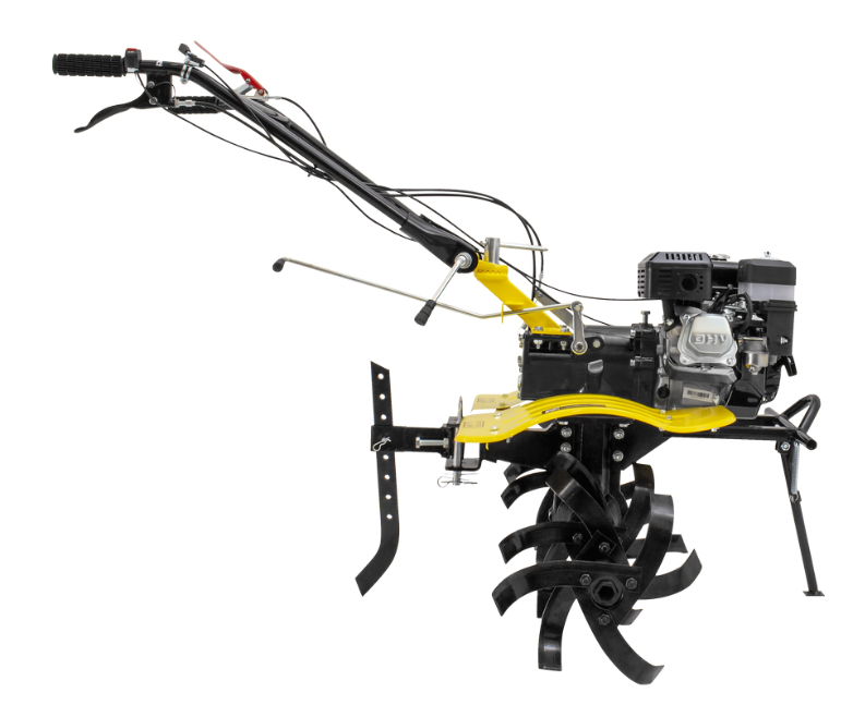 | Комплект поставки | Двигатель сельскохозяйственной машины в сборе с рамой; Рукоятка управления; Комплект кронштейнов и лезвий для фрез в разборе; Рукоятка переключения передач; Комплект инструмента для сборки; Крепежный комплект; Защитные крылья в разборе; Кронштейны для крепления крыльев; Колеса; ВОМ; Руководство по эксплуатации. |