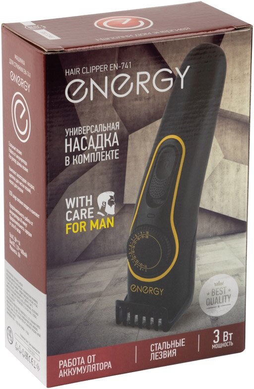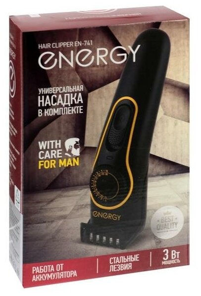 Машинка для стрижки ENERGY EN-741, 3 Вт, 1 насадка, 1-12 мм, сталь, АКБ, чёрная Energy 6627512 .