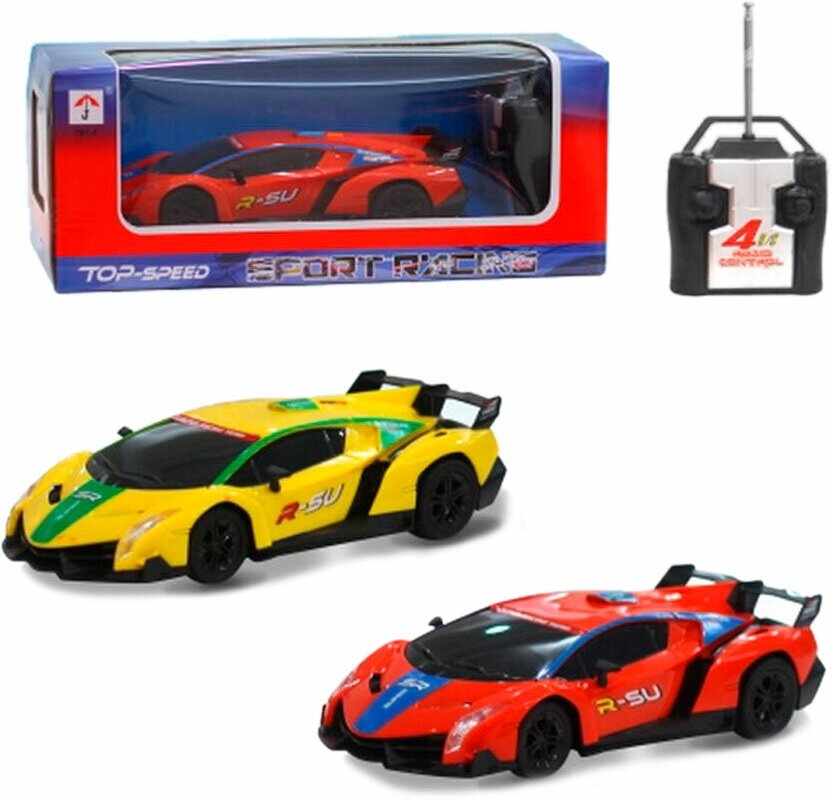 Машинка р/у 4CH 1:24, световые эффекты, цвета в ассорт. (красный, желтый) 28х12х10,5 см