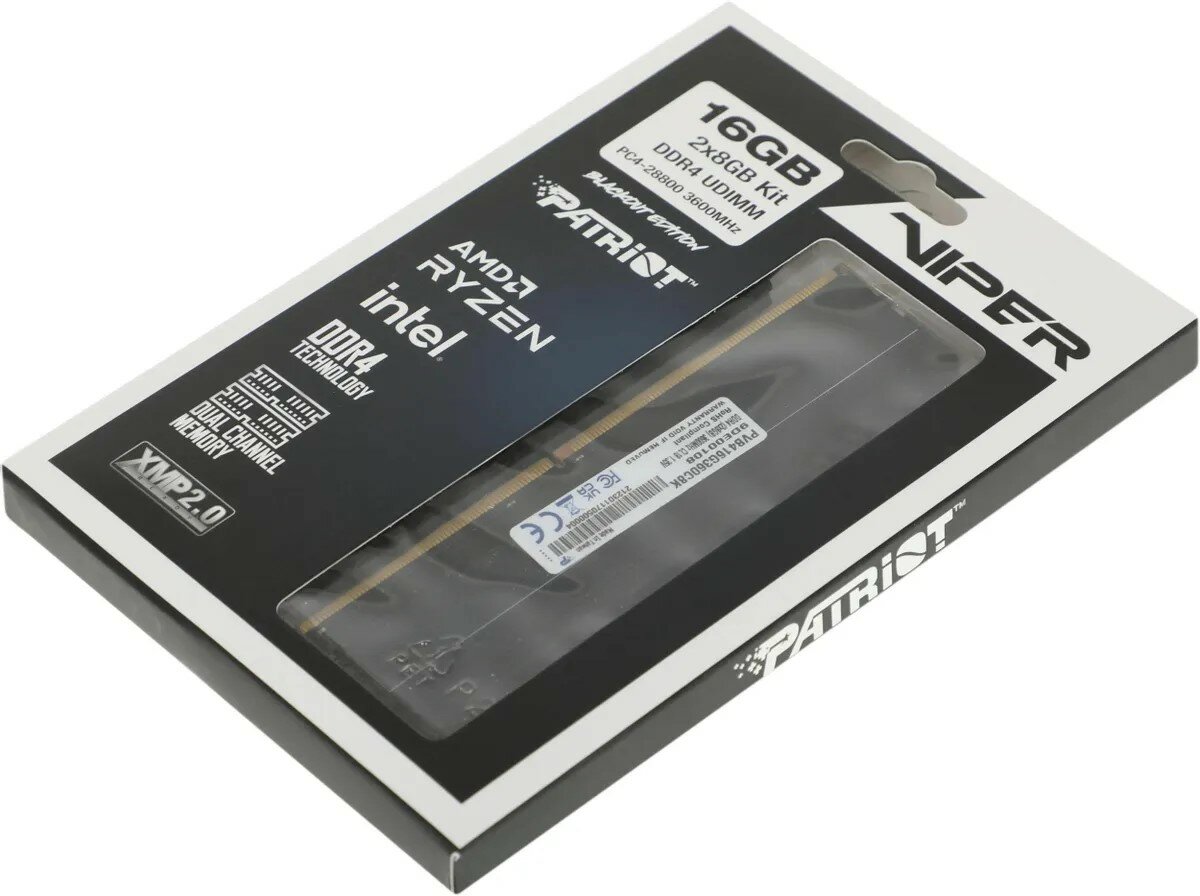 Patriot DDR4 16Gb (2x8Gb) 3600MHz pc-28800 Viper Blackout (pvb416g360c8k) Pvb416g360c8k .