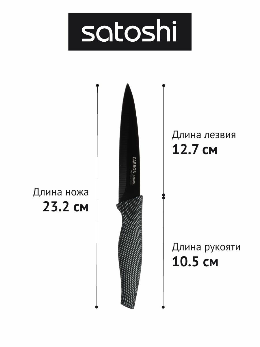 | Дополнительная информация | Нож кухонный универсальный 12,7 см SATOSHI Карбон, с антиналипающим покрытием |
