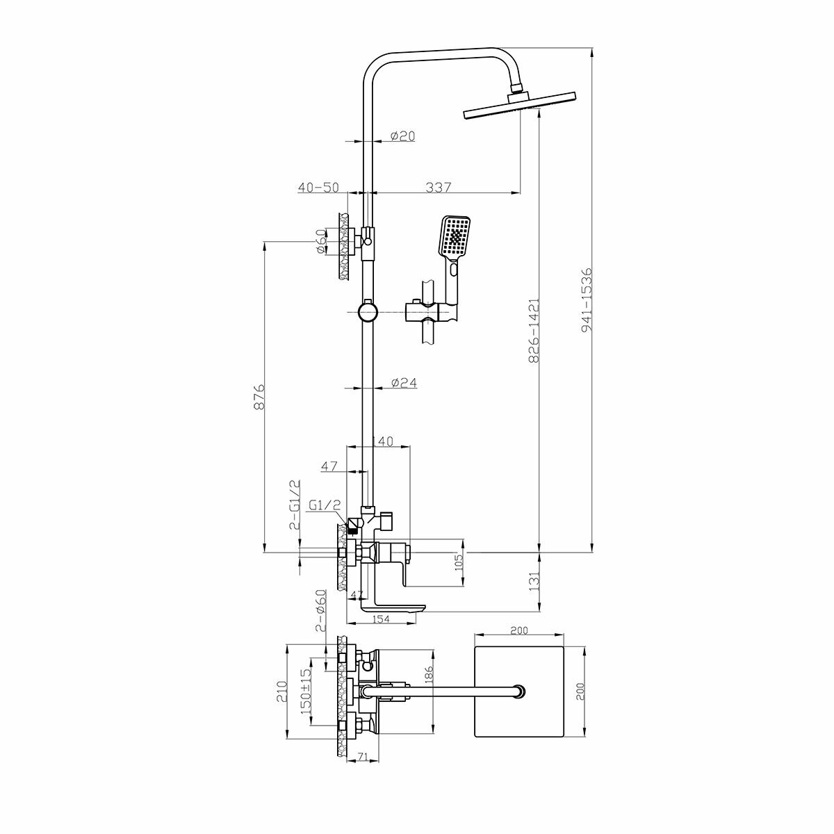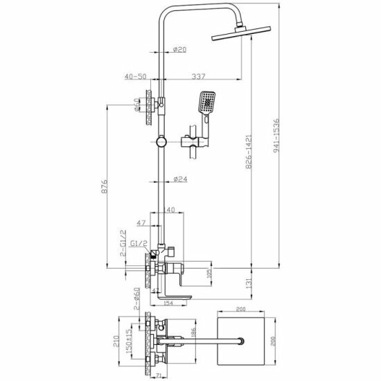 Душевая стойка Rossinka с термостатом (RS50-46)