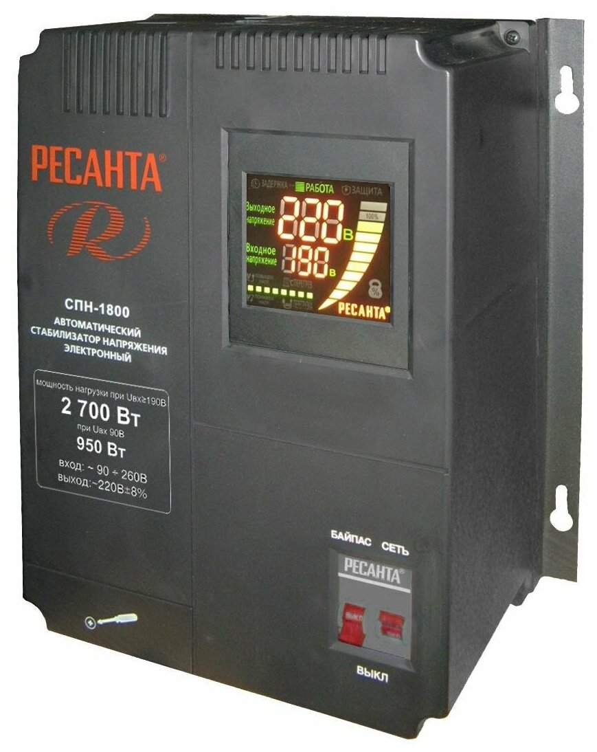 Стабилизатор напряжения Ресанта СПН-3600 (однофазный, 90 В - 260 В, 18,9 А, 3,6 кВт, 50 Гц, клеммы, LCD-дисплей)
