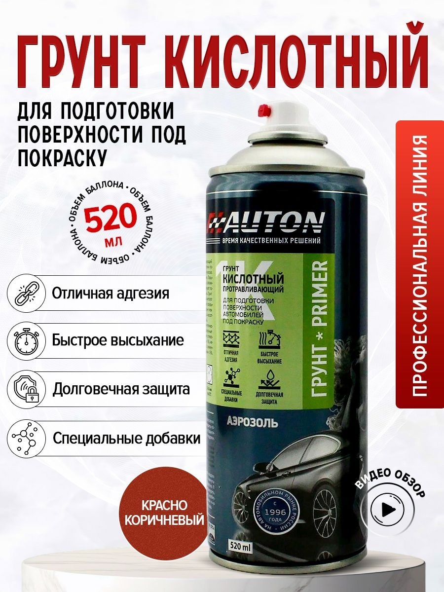 Купить Аэрозольный грунт «Auton» кислотный, протравливающий, красно-коричневый, 520 мл