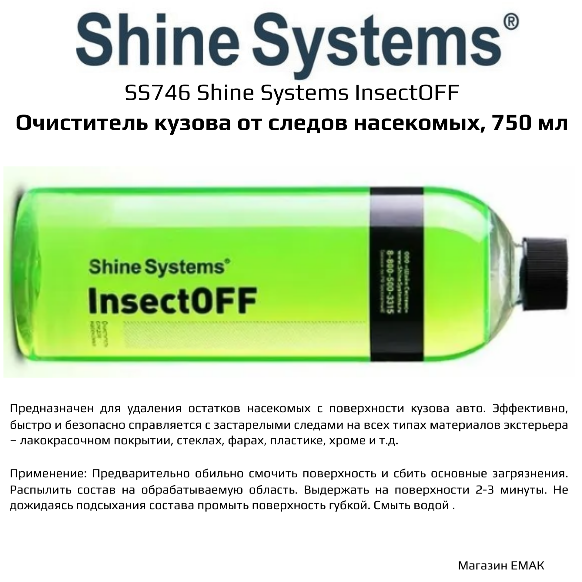 Ниже Вы можете прочитать отзывы на Shine Systems InsectOFF - очиститель следов насекомых, 750 мл, ознакомится с подробными характеристиками, посмотреть интересные обзоры и фотографии на Shine Systems InsectOFF - очиститель следов насекомых, 750 мл.