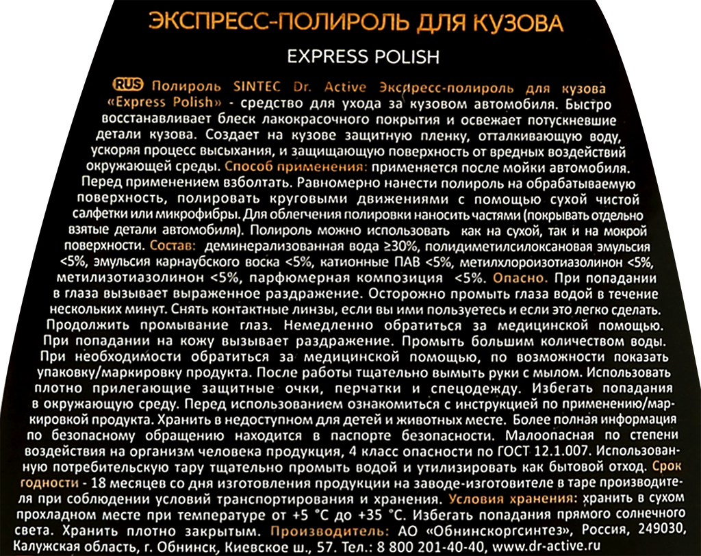 Экспресс-полироль для кузова Dr. Active "Express Polish" 500 мл интересное: