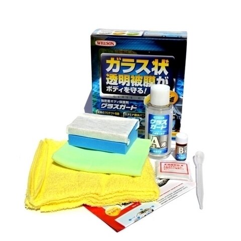 Защитное покрытие кузова (жидкое стекло) Willson Body Glass Guard, с диоксидом кремния, с водоотталкивающим эффектом, для светлых автомобилей, флакон 70+4.5мл (+2 салфетки, губка и перчатка), арт. WS-01238