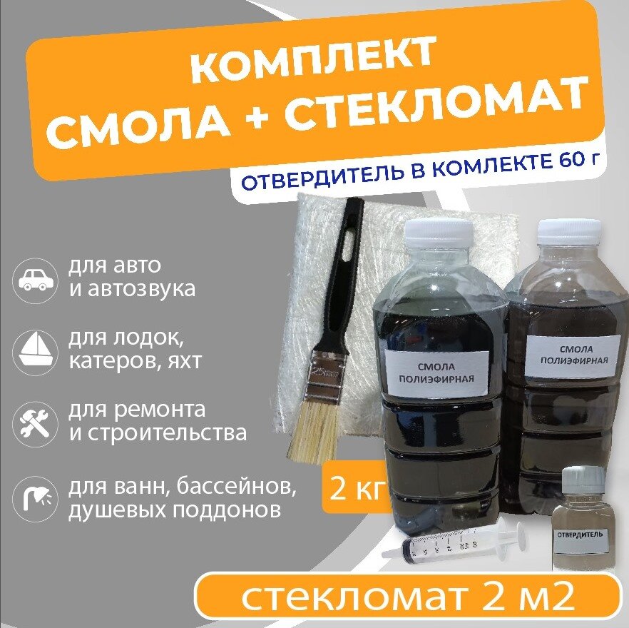 Набор для ремонта смола полиэфирная 2 кг, стекломат 2м2, отвердитель интересное: