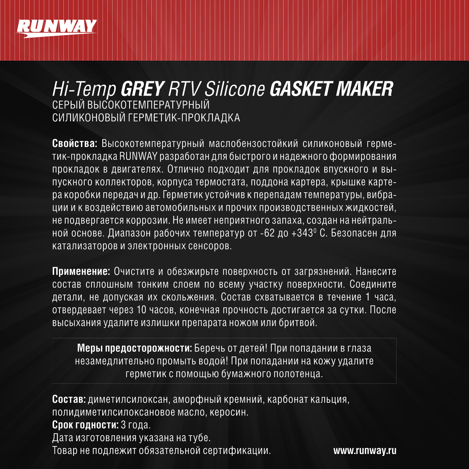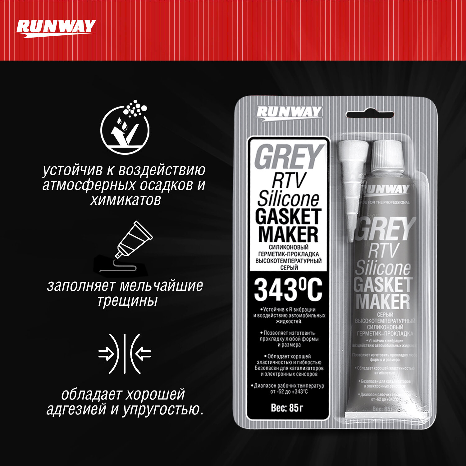 Силиконовый Герметик-Прокладка Высокотемпературный Серый 85Г Runway Rw8503 RUNWAY арт. RW8503 интересное:
