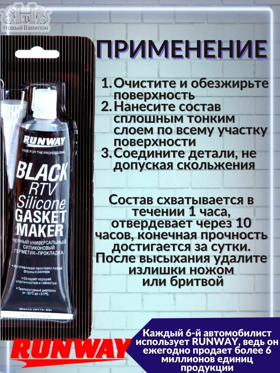 RUNWAY Силиконовый герметик-прокладка высокотемпературный черный 85г