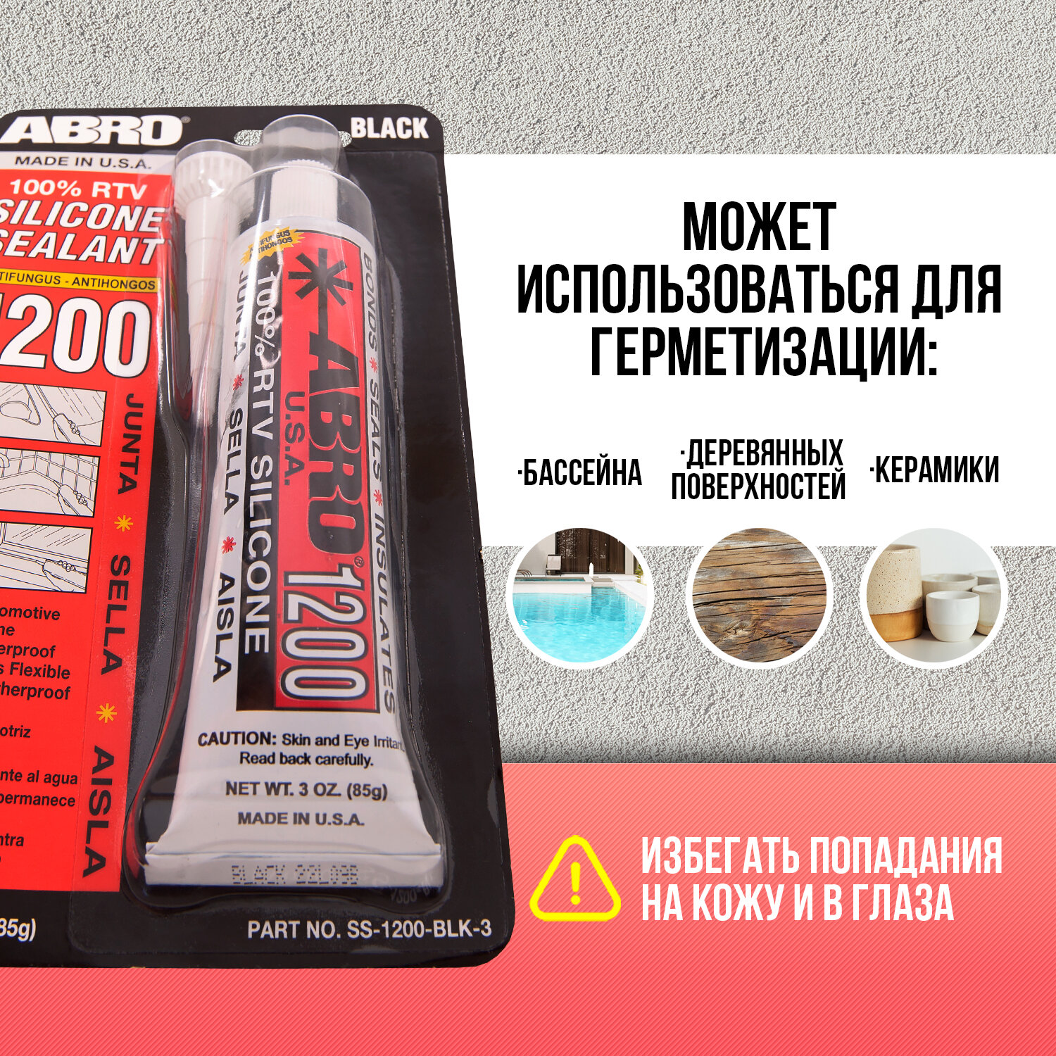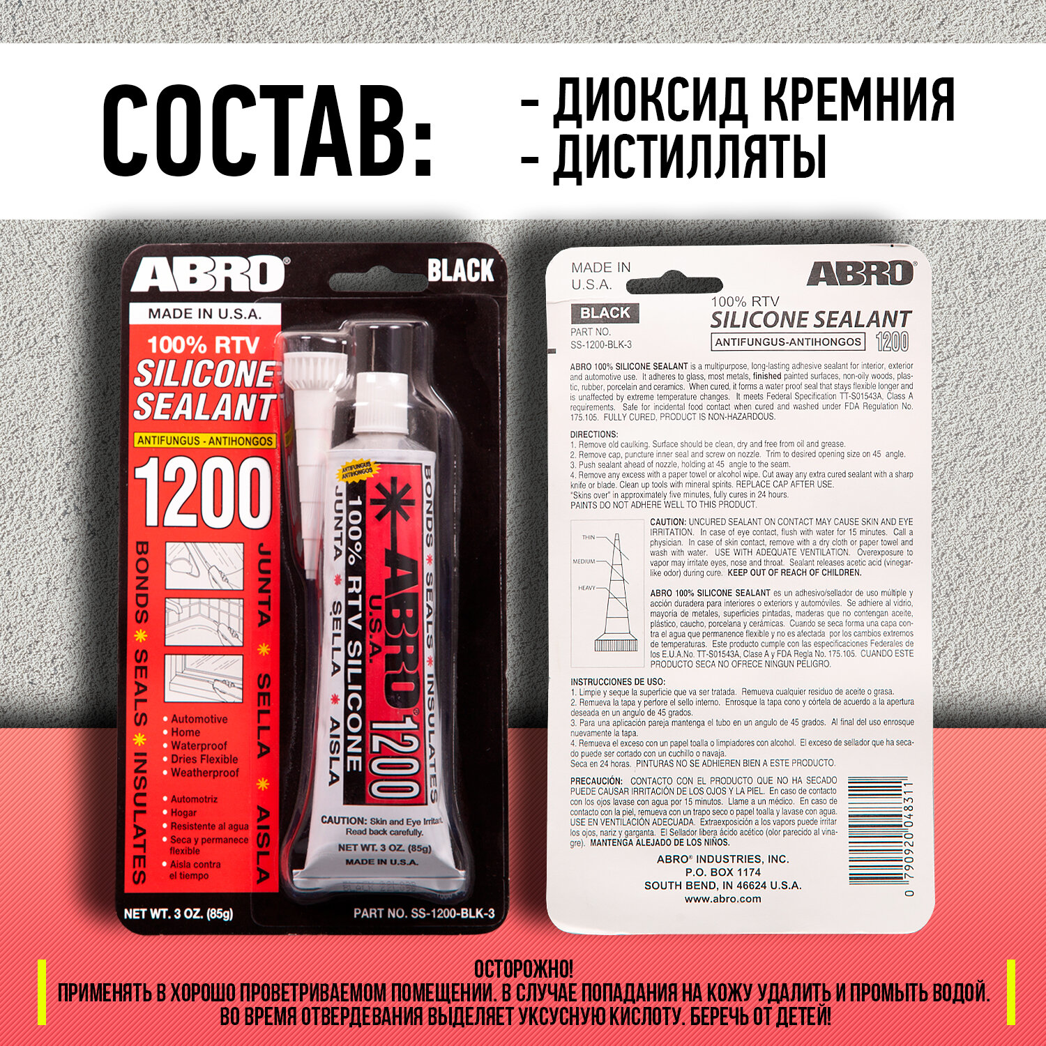 ABRO SS-1200-BLK-3 Герметик силиконовый черный (85 г) США ABRO SS-1200-BLK-3
