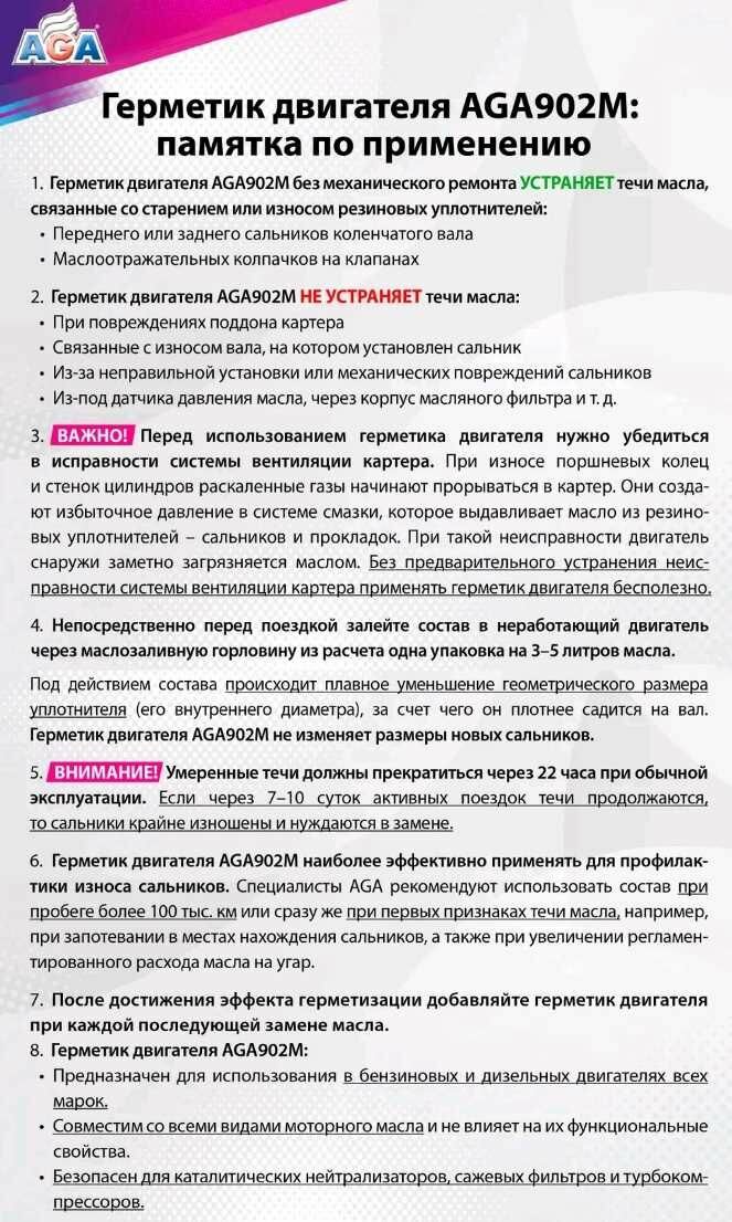 СохранитьГерметик Двигателя 355 Мл Aga Aga902m AGA арт. AGA902M интересное: