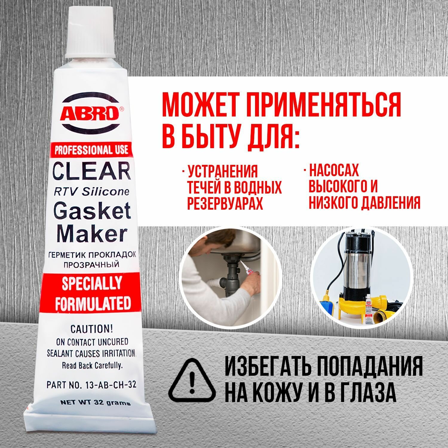 Силиконовый герметик для ремонта автомобиля ABRO 12-AB-CH-32R, 0.032 кг