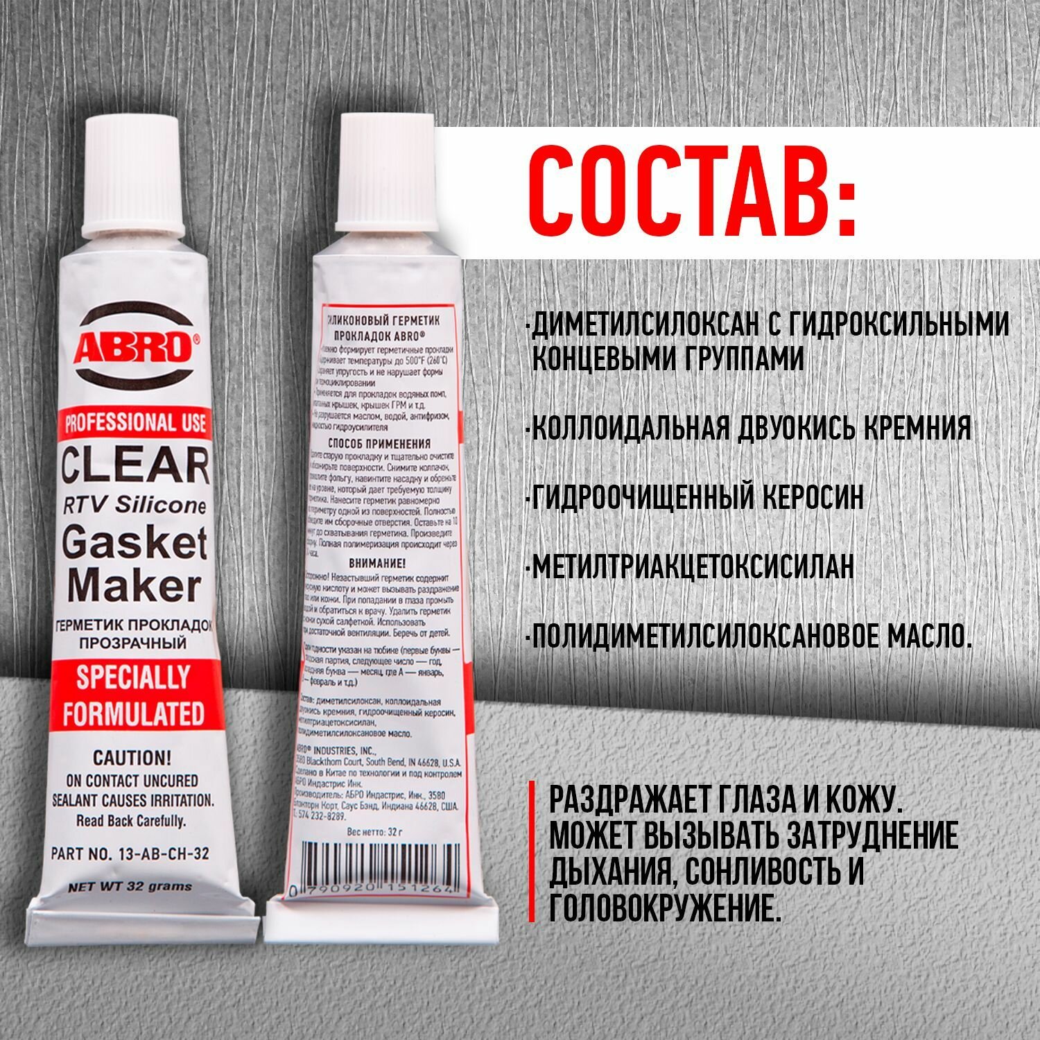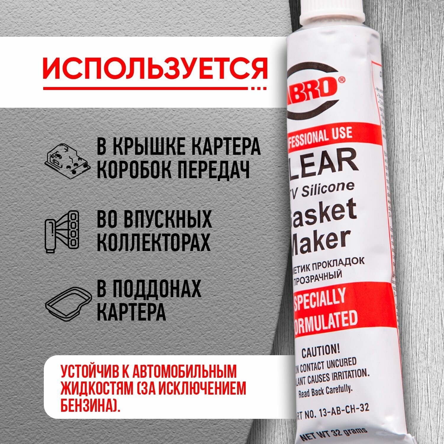 Купить ABRO Герметик прокладок ABRO MASTERS, силиконовый, прозрачный, 32 г 13-AB-CH-32