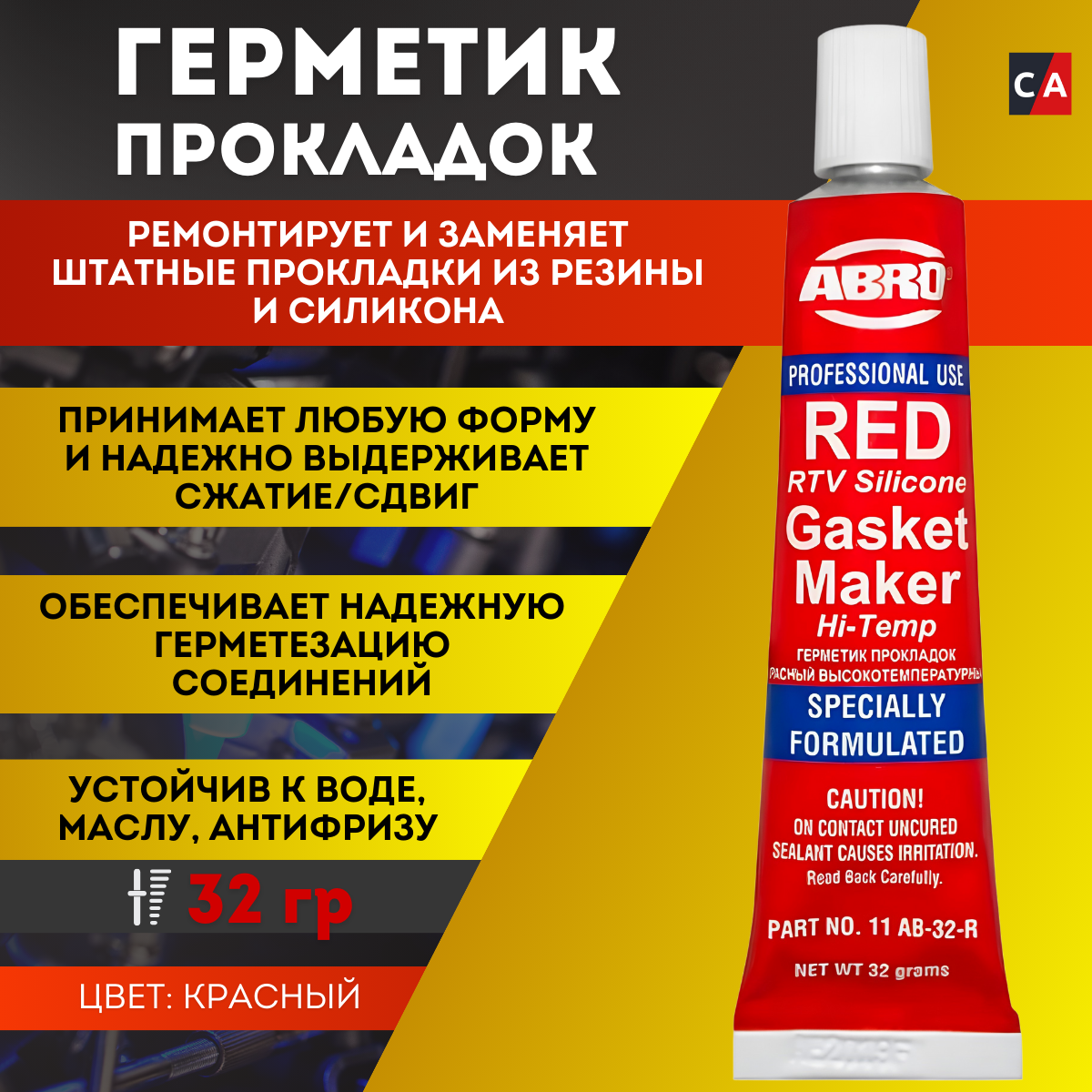 Силиконовый герметик прокладка ABRO Gasket Maker Red Высокотемпературный герметик прокладок RTV туба 32 г. 11-АВ-CH-32