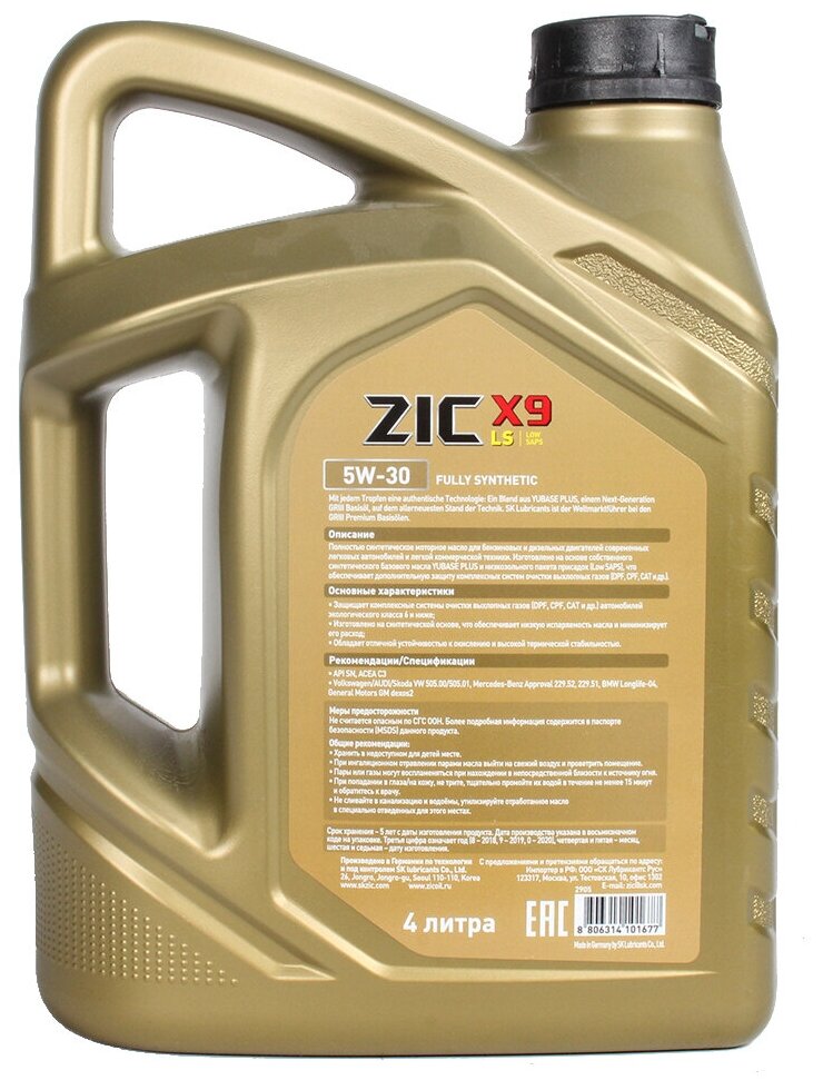 Zic Zic X9 Ls 5w30 (4l)_масло Мотор.! Синт Api Sn/Cf, Acea C3, Mb 229.51, Vw 505.00/505.01, Dexos 2