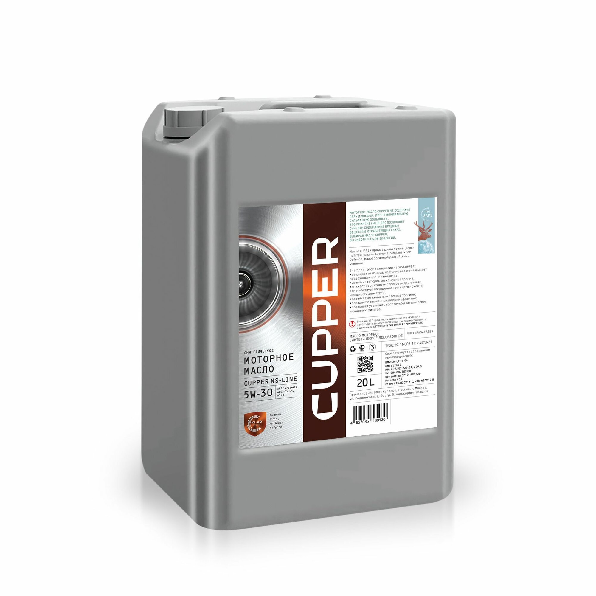 Синтетическое моторное масло CUPPER NS Line 5W-30, 4 л, 4 кг