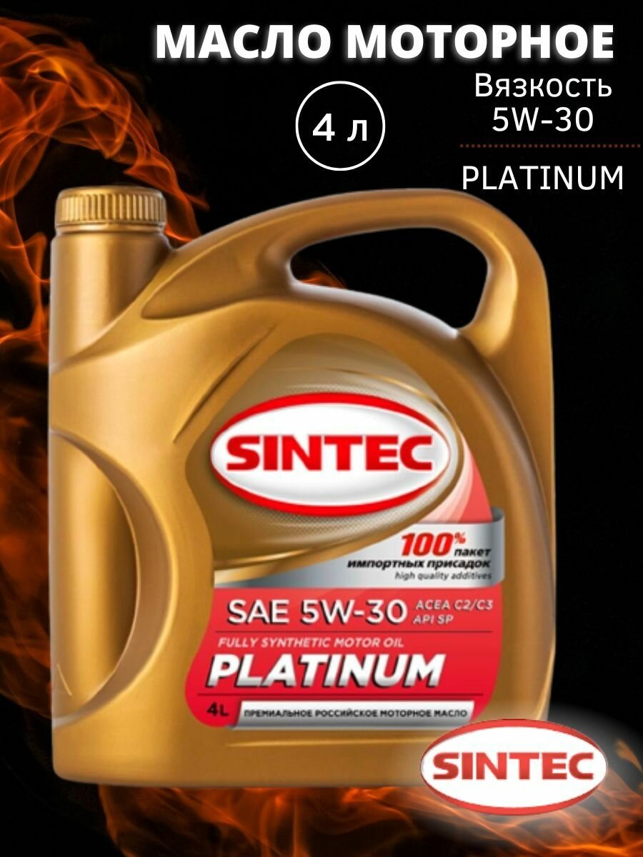 Моторное масло SINTEC PLATINUM SAE 5W-30 API SP, ACEA C2/C3 Синтетическое 4 л