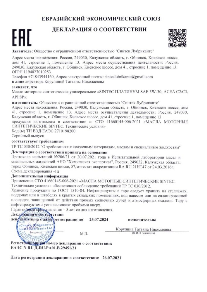 | Минусы: | Заказал синтетическое моторное масло SINTEC PLATINUM SAE 5W-30 API SP, ACEA C2/C3, но пришло Синтетическое моторное масло SINTEC PLATINUM SAE 5W-30 API SL/CF |