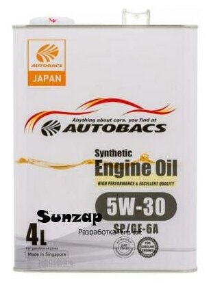 Моторное масло Сингапур AUTOBACS Engine oil SYNTETIC 5W30 SP/GF-6A 4л A00032428