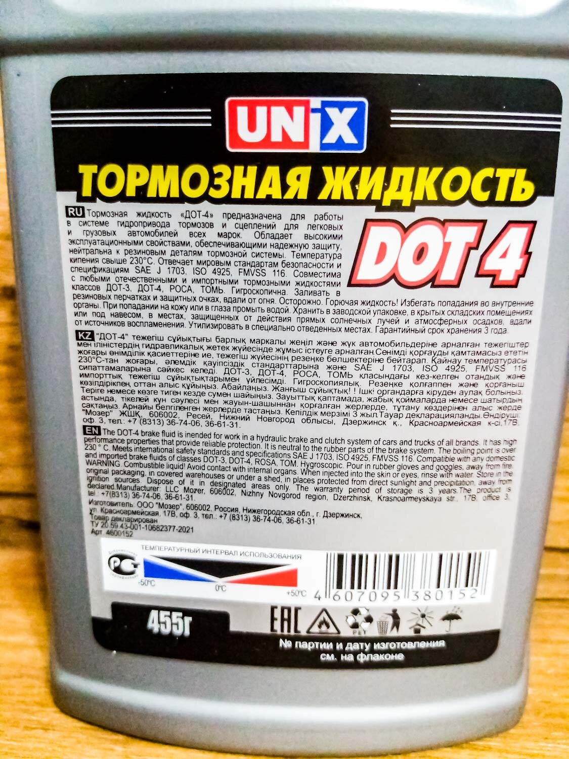 Тормозная жидкость UNIX DOT-4, Дзержинская, 0.46