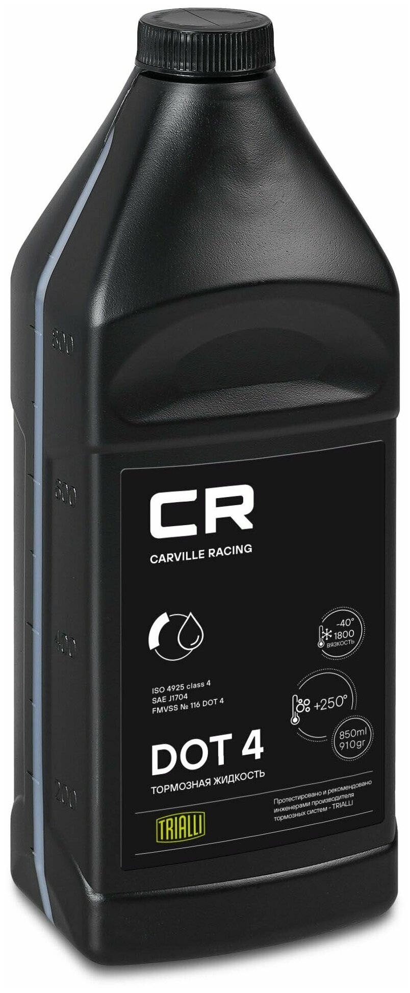 Тормозная жидкость CR DOT 4 t>250°C вязкость<1500 850мл/910гр (L4250006) CARVILLE RACING Артикул: l4250006