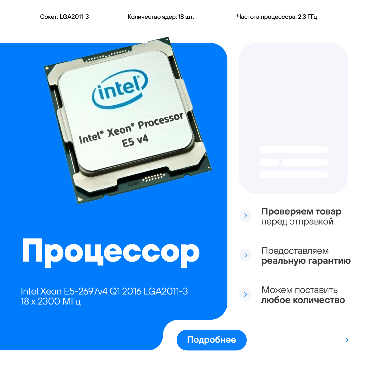 Ниже Вы можете прочитать отзывы на Процессор Intel Xeon E5-2697 v4 LGA2011-3, 18 x 2300 МГц, OEM, ознакомится с подробными характеристиками, посмотреть интересные обзоры и фотографии на Процессор Intel Xeon E5-2697 v4 LGA2011-3, 18 x 2300 МГц, OEM.
