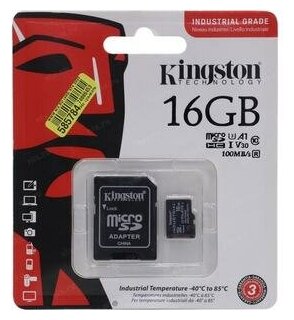 Промышленная карта памяти microSDHC Kingston, 16 Гб темп. режим от -40℃ до +85℃, с адаптером, SDCIT/16GB