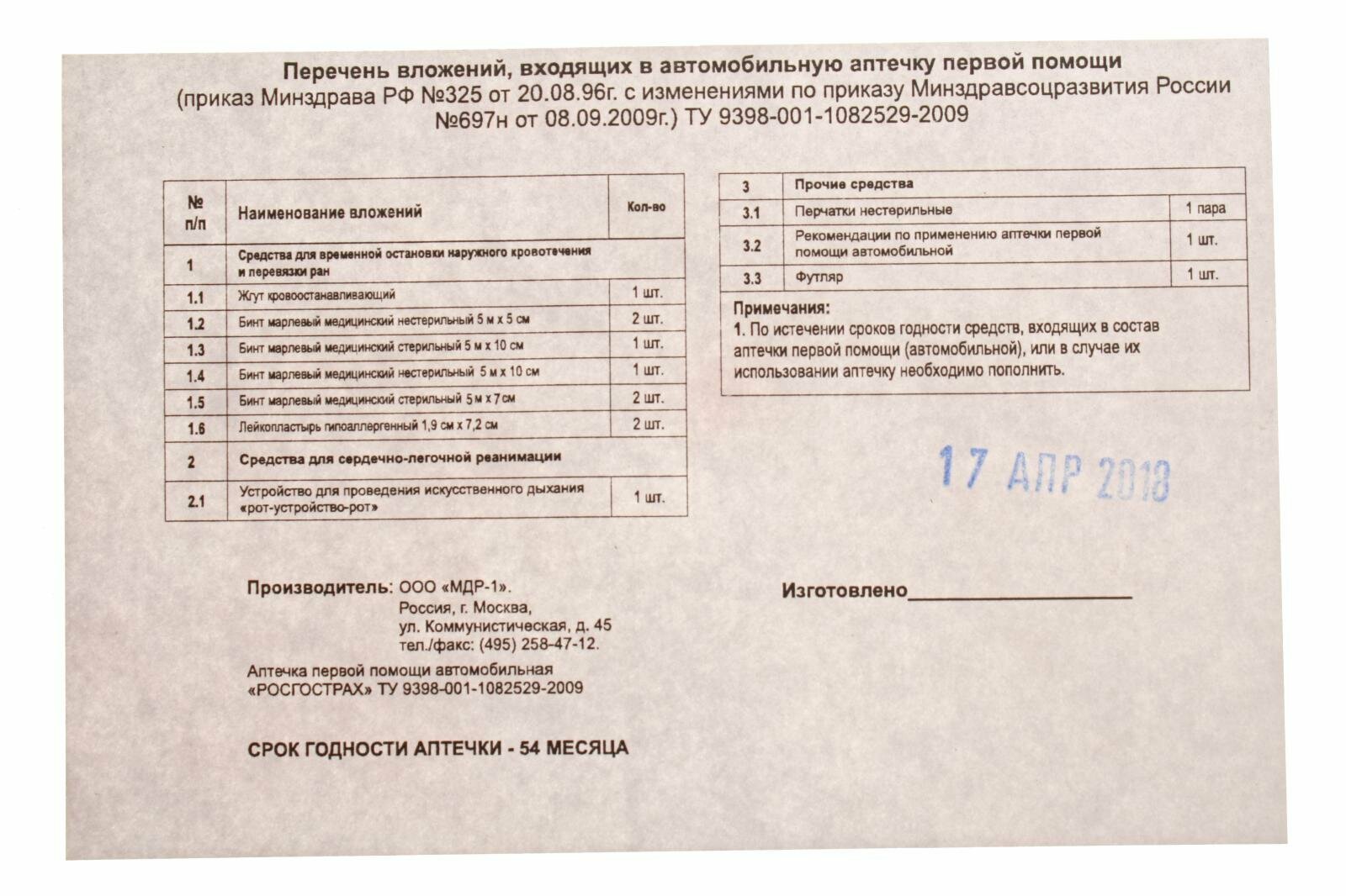 Аптечка автомобильная RGS-45 росгосстрах интересное: