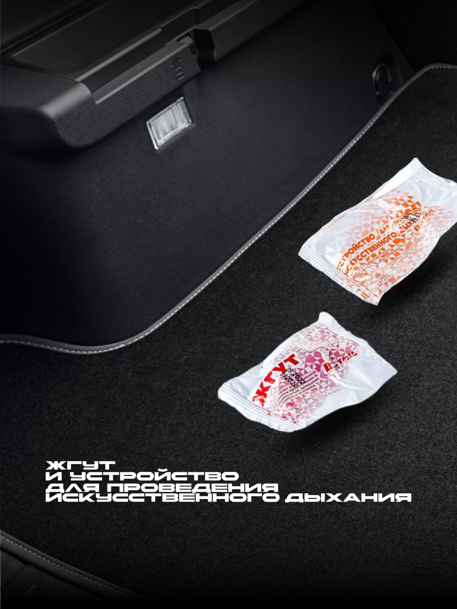 | Состав | 1.1 Жгут кровоостанавливающий – 1 шт. 1.2 Бинт марлевый медицинский нестерильный (5 м х 5 см) – 2 шт. 1.3 Бинт марлевый медицинский нестерильный (5 м х 7 см) – 1 шт. 1.4 Бинт марлевый медицинский нестерильный (5 м х 10 см) – 3 шт. 1.5 Бинт марлевый медицинский стерильный (5 м х 7 см) – 2 шт. 1.6 Бинт марлевый медицинский стерильный (5 м х 10 см) – 1 шт. 1.7 Лейкопластырь бактерицидный (не менее 4 см х 10 см) – 1 шт. 1.8 Лейкопластырь бактерицидный (не менее 1.9 см х 7.2 см) – 5 шт. 1.9 Лейкопластырь рулонный (не менее 1см х 250см) - 1 шт. Средства для сердечно-легочной реанимации 2.1 Устройства для проведения искусственного дыхания «Рот-Устройства-Рот» - 1 шт. Прочие средства 3.1 Ножницы – 1 шт. 3.2 Перчатки медицинские (размер не менее М) – 1 пара 3.3 Маска медицинская - 1 шт. 3.4 Рекомендации по применению аптечки первой помощи (автомобильной) – 1 шт. 3.5 Футляр – 1 шт. |