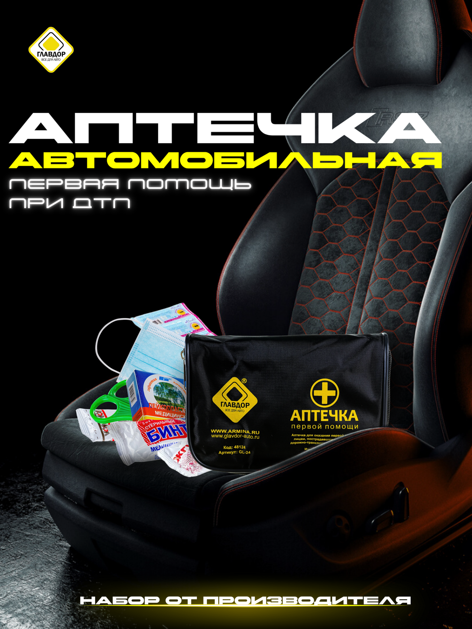 Главдор Аптечка автомобильная первой помощи GL-24 в черной сумочке 48124 . интересное: