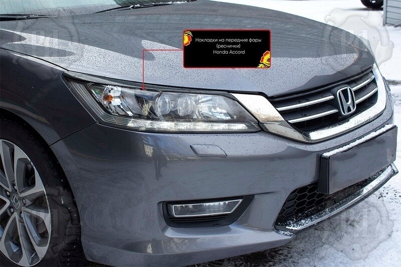 Накладки на передние фары (реснички) для Хонда Аккорд 9 2012-2015 | глянец (под покраску) интересное: