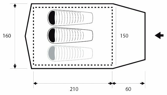 | Габариты внешней палатки(ДxШxВ) | 270x160x135 cм |