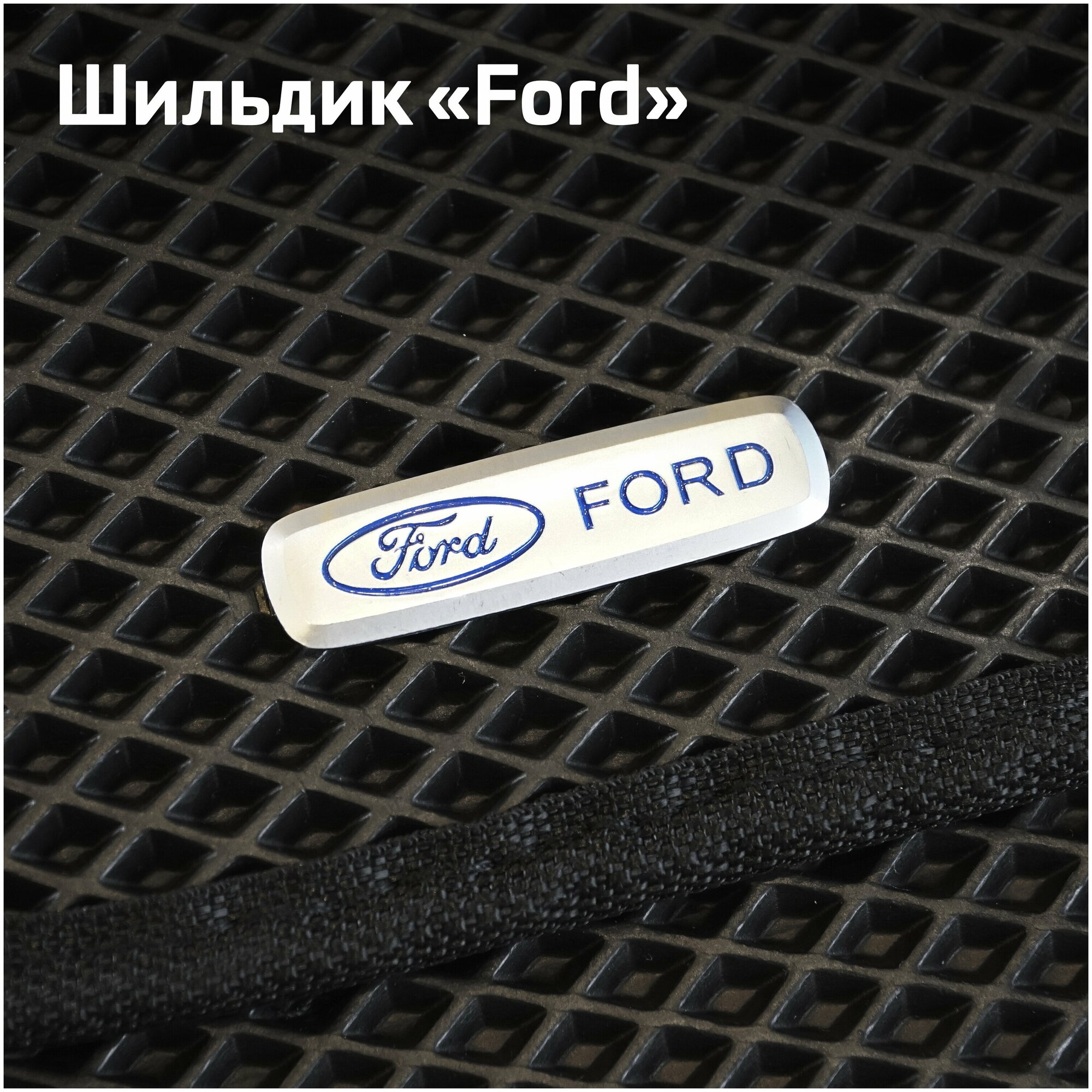 Автомобильные коврики EVA для Ford Transit Connect I (2002-2013) с каучуковым подпятником и 2 эмблемами Ford, чёрные с чёрным кантом, ячейка - ромб интересное:
