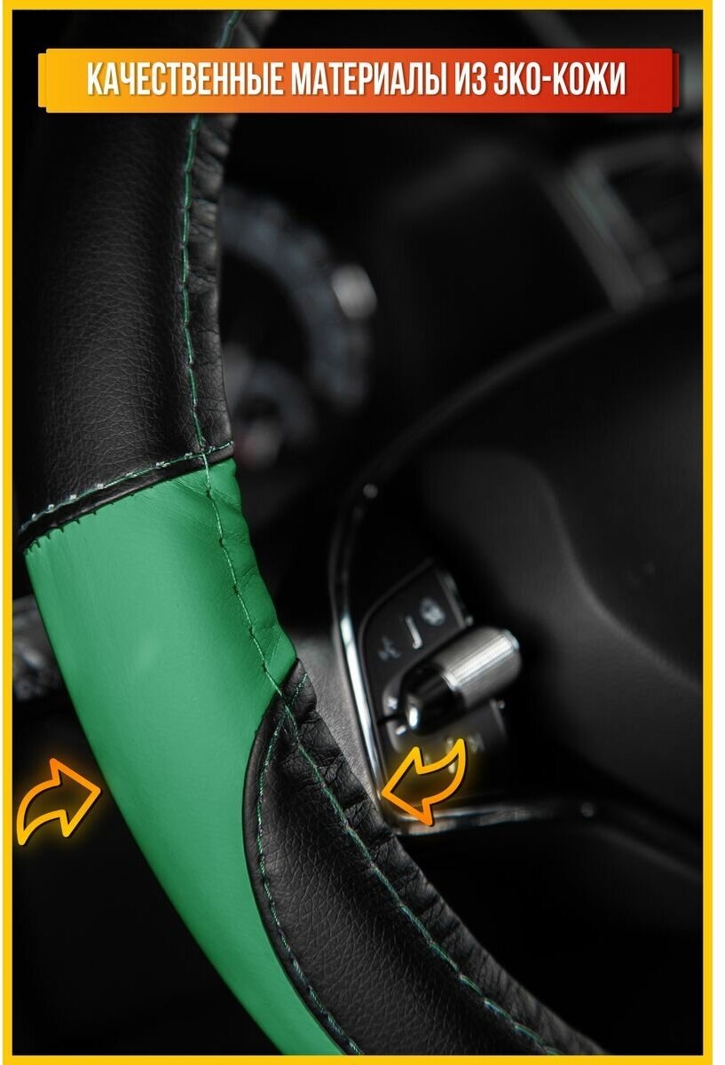 Купить Оплетка на руль Ауди Ку3 (Audi Q3), М(37-39см), Черно-зеленый